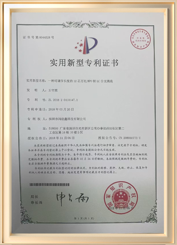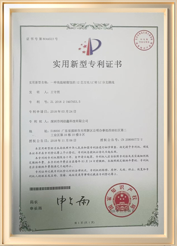 The company's main products on site include MTP/MPO high-density fiber optic pre connection systems, energy fiber optic cables, fiber optic jumper production automation equipment, fusion spliced on-site assembly fiber optic connectors, standard test jumpers, bundled fiber optic jumpers, patch cords, optical splitters, network cables, and other communication products. Since entrepreneurship, we have firmly established the idea of seeking benefits from quality and actively implemented the principle of integrity first. Our products have been widely used by major operators and domestic first-class enterprises, and have won their recognition and trust. In 2022, a production base for fiber optic jumpers and PICs was officially established in Shandong, with a total of 100 production employees, 25 technical, sales, and management personnel, occupying 2300 square meters of production site.
